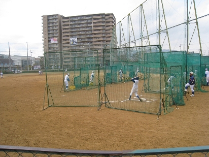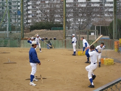 このときはゆるい球を打つ練習で、このあと速い球をうつ練習をしていましたが、両方とも、右打者はセンターからライト方向へ、左打者は、センターからレフト方向へ打つ練習でした。この練習が12月から2月まで続けるとのことです。これもイチロー選手から取り入れた練習方法です。イチローは試合まえのバッティング練習では、センターからレフト方向への打撃を繰り返し、身体からバットを押し出す感覚をしっかり感じ取ります。そのうえで試合に臨みますので、自然のバットの振り方が手打ちでなくなります。ここにも正しい基本練習が行われています。