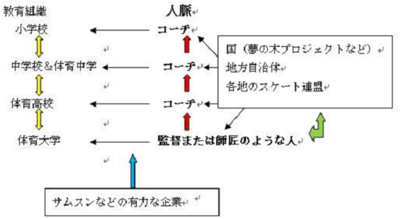 この一貫体制の中核は、学校制度ではなく、韓国社会特有の人脈です。人脈に学校制度が乗っかっている感じです。人脈と学校制度の複合体に、地方自治体、競技団体などが、有力な企業からの献金などを受けつつ、コーチや選手の経済的サポートを行っている図式です。