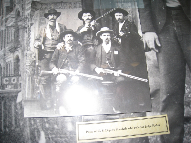 西部劇の大ファンである私は興味津々で、写真の解説を読みますと、5人の男たちは連邦保安官なのです。『一体、なんで西部開拓時代の連邦保安官の写真があるのだろう』と不思議に思って、視察団のコーディネーター役の人に質問をしたら、「パーカー判事のもとで働いていた連邦保安官で、彼らはネイティブインディアンの地域に逃げん込んだ犯罪人を捕まえて、フォートスミスに連行してきた」から始まり、フォートスミスの歴史を詳しく教えてもらいました。西部開拓の歴史で、フォートスミスがアメリカ連邦政府の力が及ぶ最終地点で、そこから西はネイティブ・アメリカンの土地という時代があったそうです。犯罪者は、フォートワースから西側の広大な地域に逃げこみ、逮捕を逃れようとしました。その犯人を追いかけたのが連邦保安官で、連行された犯人を裁くのが、「首つりパーカー」と悪人から恐れられたパーカー判事でした。「勇気ある追跡」の映画を観た時、パーカー判事が架空の人間と思っていましたので、彼が実在の人物で、しかもアメリカの歴史上、有名な人と知ってびっくりしました。