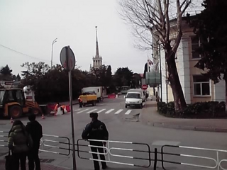 <写真>ソチ市街の観光スポットにて。どこもかしこも道路を掘り返していて、工事用のシャベルカーやトラクターは韓国の現代製が目につきました。